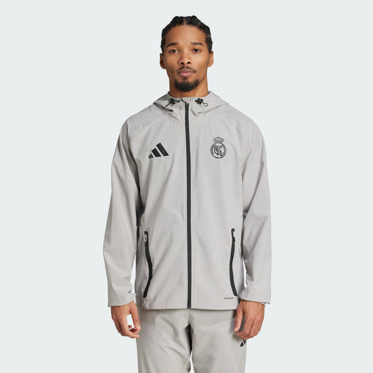 La Tuta Real Madrid Tiro 25 combina stile e prestazioni con un design bicolore grigio...