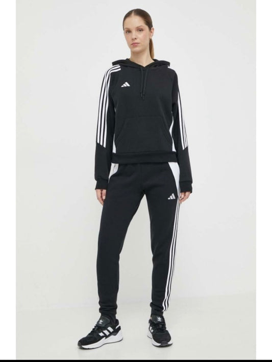 This Adidas women's tracksuit features a cropped sweatshirt with a hood, combining style and comfort...