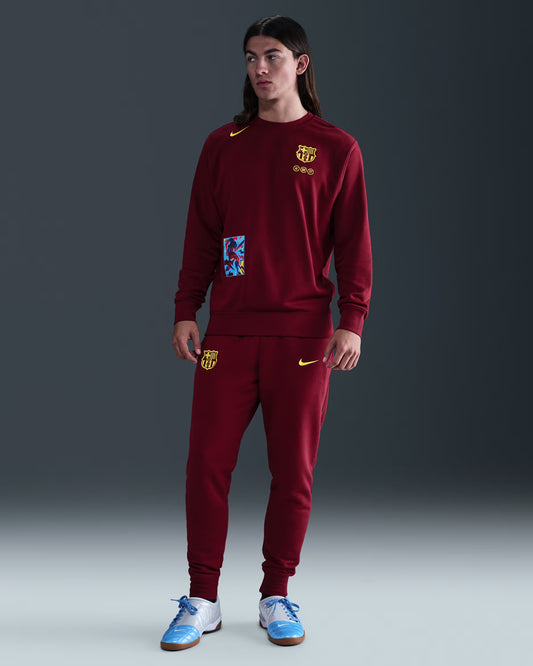 Tuta ufficiale Nike FC Barcelona in bordeaux con accenti gialli, perfetta per i tifosi blaugrana....