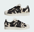 Le Adidas Superstar II W con effetto mucca bianca e nera rappresentano un'evoluzione stilistica del modello iconico che ha definito il basket degli anni '80. Questo sneaker combina la silhouette classica con un pattern geometrico audace, creando un contrasto visivo che cattura l'attenzione. La tomaia in pelle garantisce durabilità e un supporto affidabile, mentre la suola in gomma offre grip e stabilità su diverse superfici. Perfette per chi ricerca un equilibrio tra heritage sportivo e personalità contemporanea, queste scarpe si adattano facilmente a look casual e streetwear.