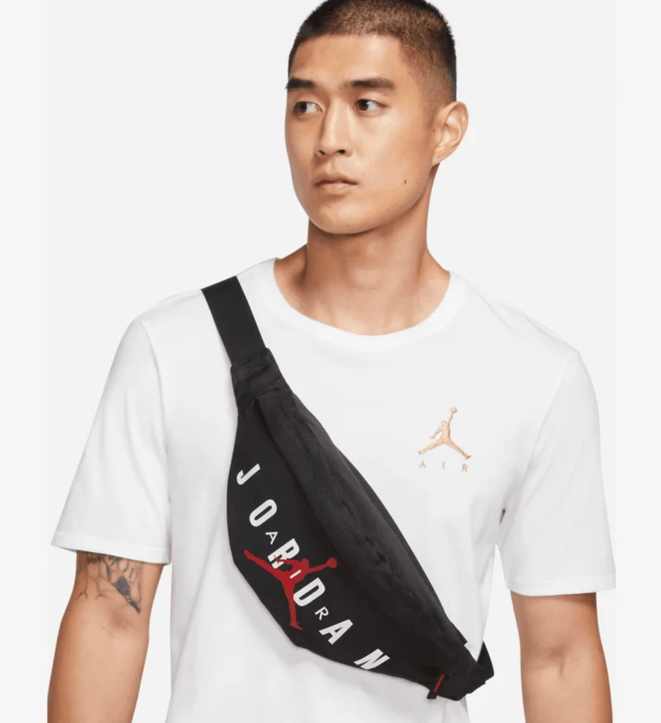 Aggiungi stile e praticità al tuo abbigliamento con il Marsupio Jordan Unisex. Progettato con una scritta bianca e rossa che aggiunge un tocco di personalità, questo marsupio nero è perfetto per portare con te le tue cose più importanti in modo comodo e trendy.
