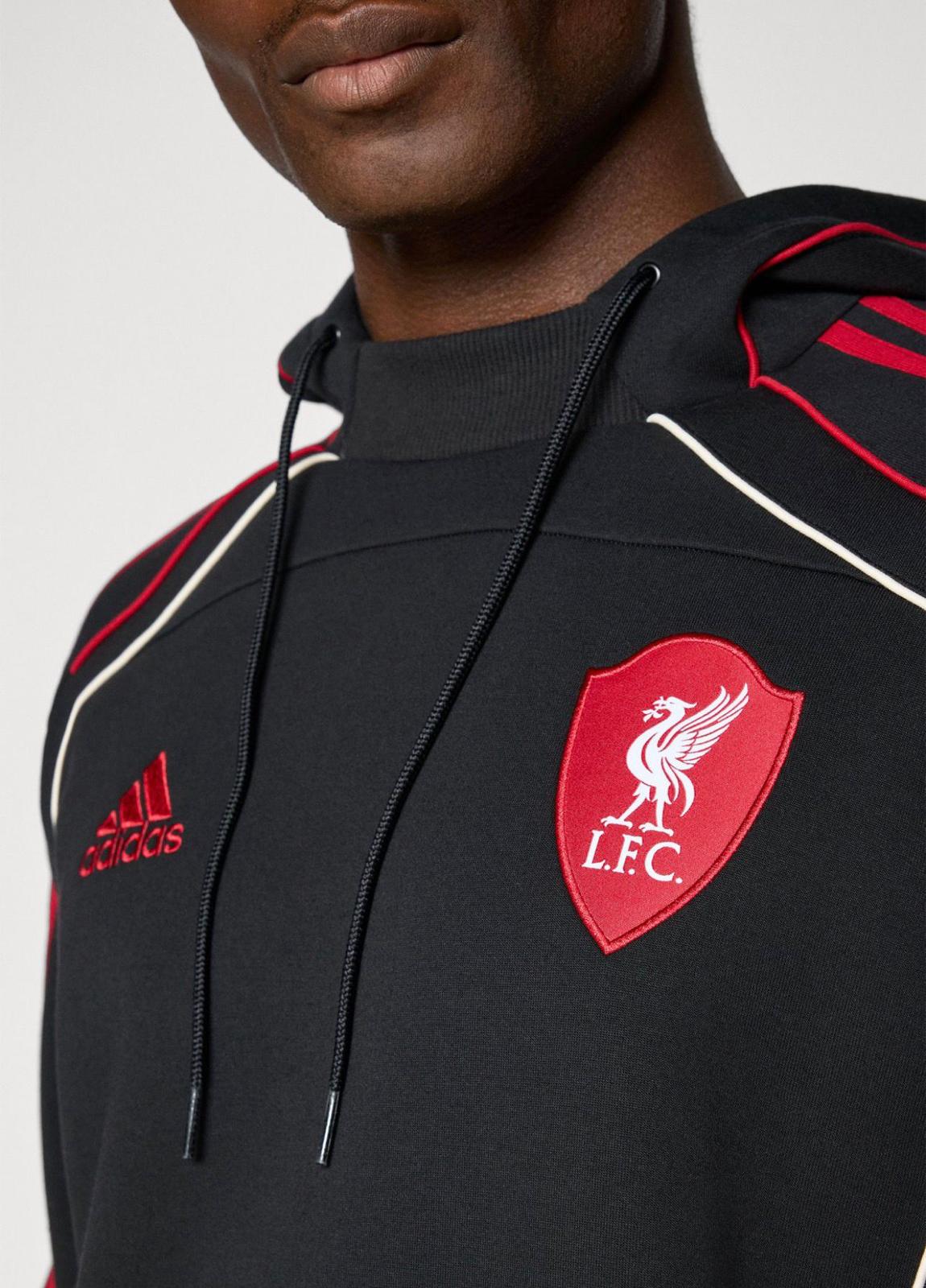 Tuta da uomo Adidas ispirata allo stile Liverpool, realizzata in tessuto tecnico di qualità. Caratterizzata da cappuccio comodo e pratico, presenta una combinazione cromatica elegante con base nera arricchita da dettagli rossi e bianchi che richiamano l'identità del celebre club. Perfetta per chi desidera un capo sportivo versatile, adatto sia per l'allenamento che per il tempo libero. La costruzione Adidas garantisce comfort e durabilità nel tempo.