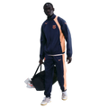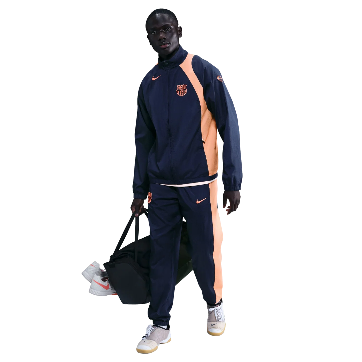 Tuta ufficiale Nike del FC Barcelona in blu royal con accenti arancio fluo che richiamano l'identità visiva del club. Realizzata in tessuto tecnico traspirante, garantisce comfort e libertà di movimento durante l'allenamento e la competizione. La silhouette moderna e il design minimalista la rendono versatile sia per il campo che per l'uso casual. Perfetta per i tifosi e gli atleti che desiderano indossare i colori blaugrana con stile e qualità certificata.