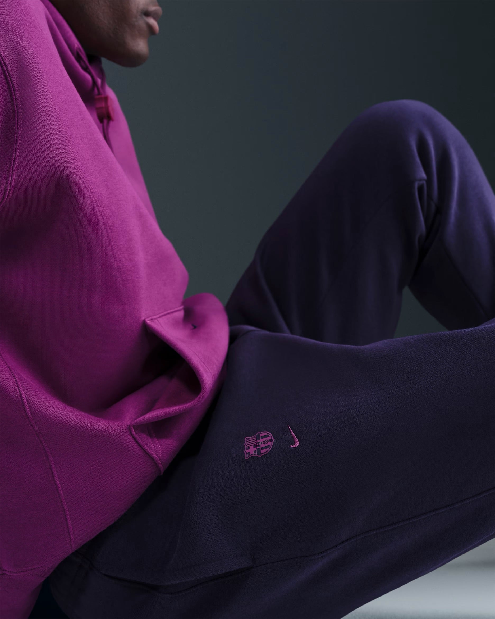 La tuta Nike FC Barcelona Club da uomo combina stile e funzionalità, ideale per gli appassionati del calcio. Realizzata con materiali di alta qualità, offre comfort e traspirabilità durante l'attività sportiva o il tempo libero. Il design viola, ispirato ai colori del Barcellona, garantisce un look distintivo e moderno, perfetto per sostenere la propria squadra con eleganza.