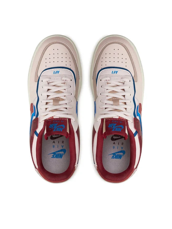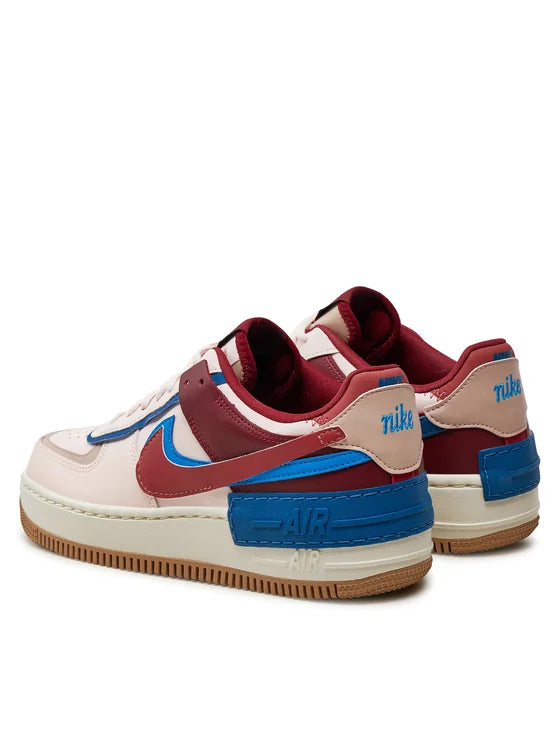Elevate your footwear collection with the W AF1 Shadow in striking rosa, blu, and bordeaux colorway. This women's silhouette reimagines the iconic Air Force 1 with dimensional layering and double design elements for added depth and texture. The premium construction offers exceptional comfort while the distinctive color combination ensures standout style with versatile pairing options.